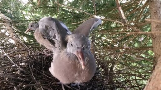 Дикие лесные голуби вяхири выводят птенцов: гнездовая жизнь.