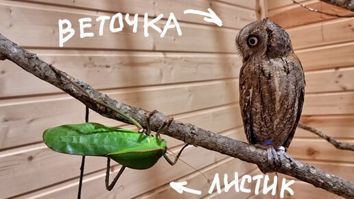 Реакция сов сплюшек на гигантских кузнечиков. Кузнечик размером с сову? Существует!