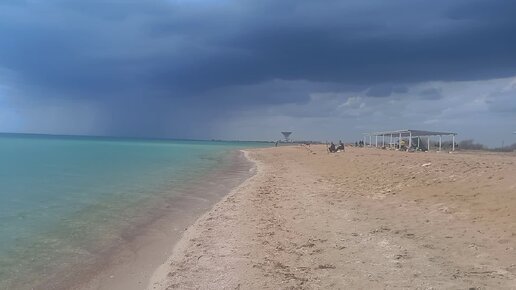 Грозовое небо и пустой пляж 1 мая в поселке Молочное (Западный Крым)