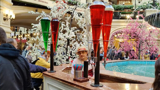 Прогулка по первому этажу ГУМА весной. Выставка велосипедов. Очереди за мороженым в майские праздники. Обзор фонтана