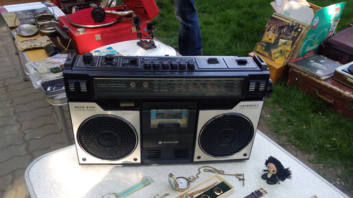 50-летняя магнитола SANYO. Демонстрация работоспособности на барахолке.