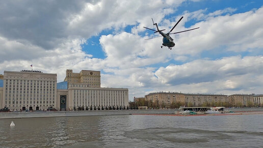 Посадка на Москву-реку военного вертолёта Ми-8 в центре столицы. 1 мая 2022 года