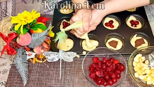 Нашла замечательный рецепт легких творожных кексов с 3-мя начинками; получаются всегда удачно