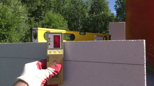 9. Моя стройка. Стены из газоблока. Установка угловых блоков первого ряда по лазерному нивелиру
