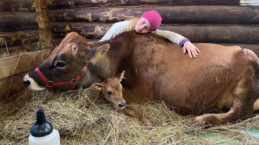 Отёл джерсейской нетели из Дании за 2 минуты🐮