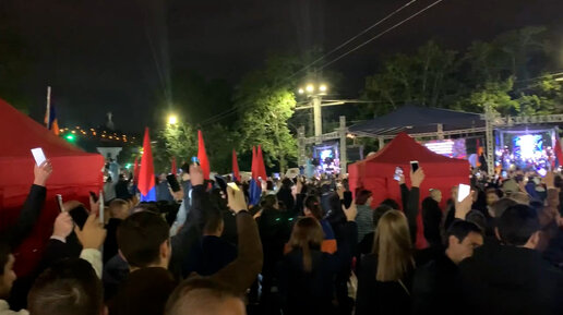 Площадь Франции. Люди поют патриотическую "Проснись, сынок"