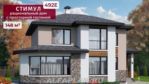 Проект компактного дома с просторной гостиной "Стимул" 492Е, 148 м2, 4 спальни