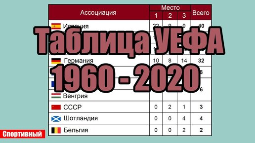 Таблица коэффициентов УЕФА с 1960 по 2020. Кто был на первом месте?