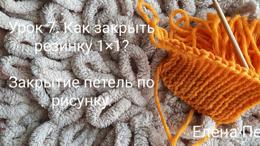 Как закрыть петли резинки 1×1. Закрытие петель по рисунку. Урок 7.