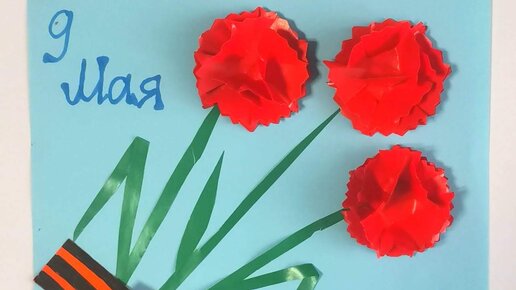 Гвоздики из цветной бумаги, объёмная открытка на 9 мая