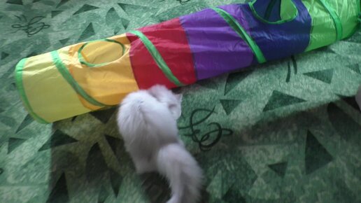 Маленькая кошечка охотится на игрушку.