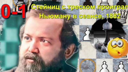 Колоссально-радикальная жертва ферзя против Стейница: чемпион мира в этой партии сеанса против Ньюмана сыграл слабо (США, 1882)
