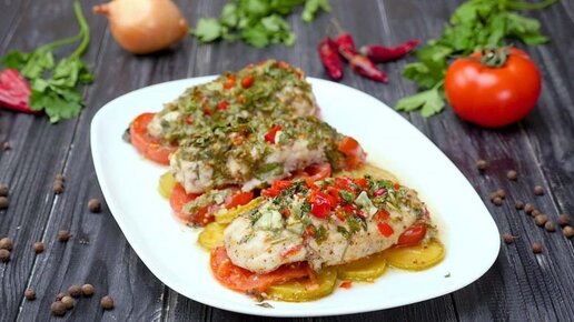 Куриные грудки, запеченные с овощами
