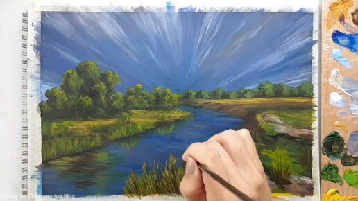 Обзор чёрного альбома Hatber + рисуем пейзаж акрилом