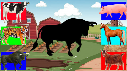 МИЛЫЕ ЖИВОТНЫЕ - Тигр, бык, бизон, корова, козел, свинка, лошадь - Пазлы для детей