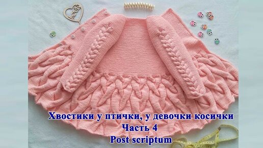 Детский_кардиган_спицами__Хвостики_у_птички__у_девочки_косички. Часть 4. Мастер-класс по вязанию