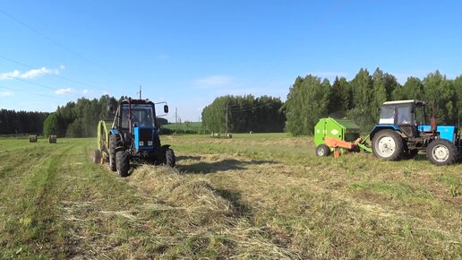 Трактор МТЗ-82 косит, загребает, рулонит. Уборка сена за 10 мин.
