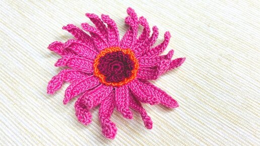Видео обзор по вязанию крючком цветка герберы.