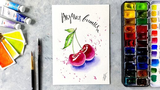 🍒 Акварель для начинающих. Рисуем вишню за 20 минут. Скетчинг