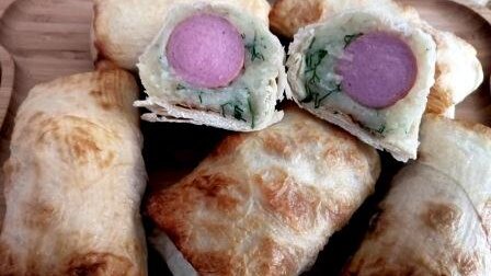 Сосиска с картофельным пюре в лаваше.