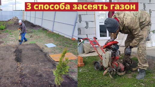 Посеяли газон 3 способами: лопатой, культиватором, трамбовкой, без трамбовки. Первые результаты.