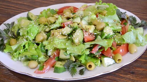 Полезный овощной салат "Витаминный" с оливками и авокадо.