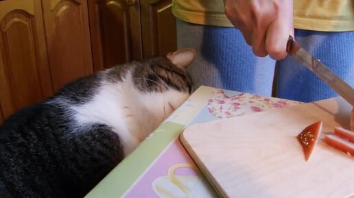 Бучик ест только на полу ( cat Buchik eats only on the floor )