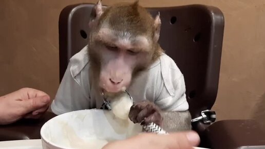 Совет от обезьяны Федора : как правильно есть кашу/ капуцин Ульяна и макака Федя (домашние обезьяны)