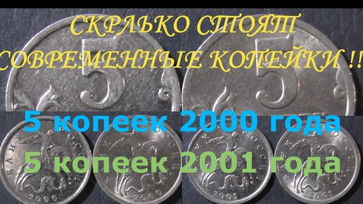 СКОЛЬКО СТОЯТ СОВРЕМЕННЫЕ КОПЕЙКИ !!! 5 КОПЕЕК 2000 ГОДА, 5 КОПЕЕК 2001 ГОДА.