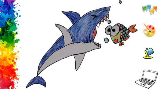 Как нарисовать Акулу карандашом поэтапно, лёгкий рисунок Акула для детей