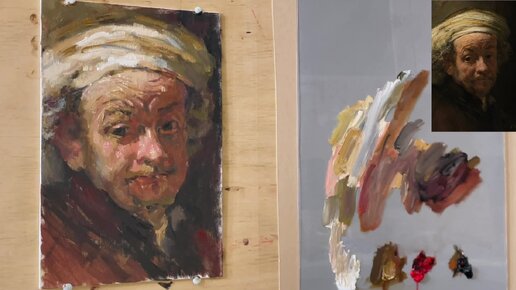 Простая техника живописи четырьмя цветами, копирую Рембрандта