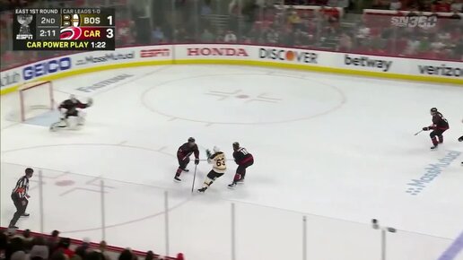Стычка между Петром Кочетковым (1я игра в плей-офф НХЛ) и Брендом Маршандом, Каролина - Бостон 5:2 (второй матч), 05.05.2022