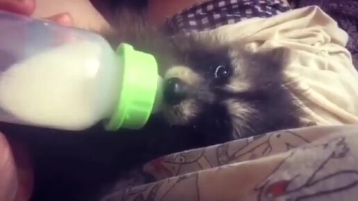Крошка енот кушает с бутылочки
