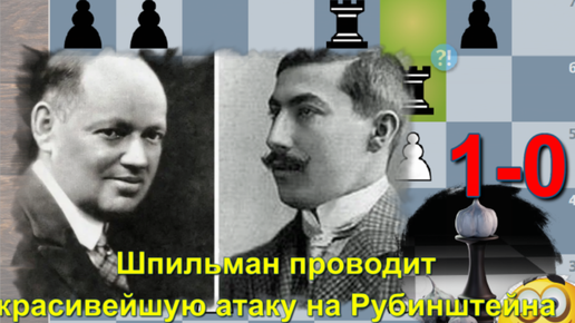 Полный "размес" от Шпильмана с агрессией на Рубинштейна - уверенная матовая атака с жертвами - все как мы любим (Карлсбад, 1911)