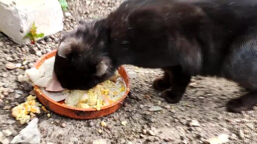 Кот Черныш кушает, все происходит быстро! Черный кот, все подряд не ест, выбирает!