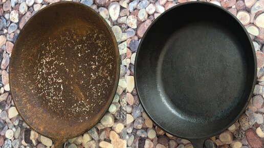 Такой ржавчины и нагара на сковороде я еще не видел. Как очистить чугунную сковороду