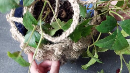 №13 Дачное Подвесное Кашпо "Азау" 3-Д рисунком вяжем крючком из Джута
