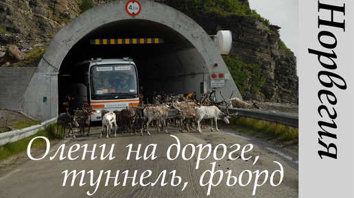 Олени на дороге не дают проехать. Туннель Скарвберг. Порсангер-фьорд | Норвегия, дорога E69.