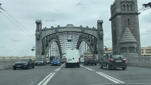 Мост Петра Великого. Медленно но едем. 5 мая 2022. Все перекрыли с 12:30 до 18:30 на репетицию парада.