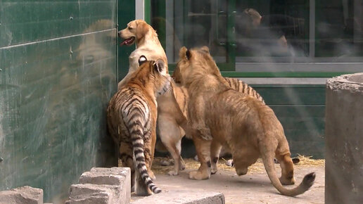 Друг в беде не бросит. Собака в Иркутске подружилась со львом и тигрицами