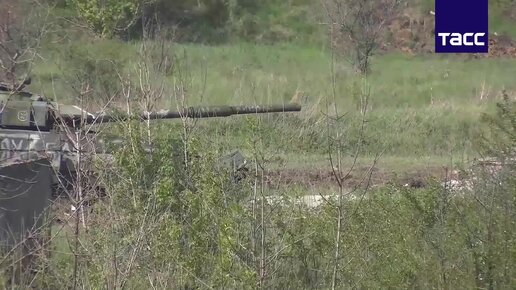Кадры боевой работы экипажей танков подразделений Вооруженных сил России по уничтожению огневых точек укрепрайона ВСУ