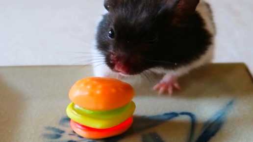 Красивые хомячки кушают Гамбургер Милые Животные Видео про Насекомых Хомяк ест бургер