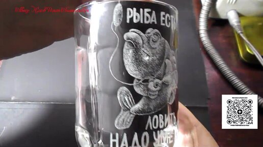 Делаем прикольную гравировку на пивном бокале для рыбака.