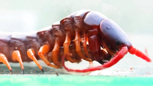 Ядовитая гигантская сколопендра Милые животные видео про насекомых Сколопендра ест червя Видео крупным планом