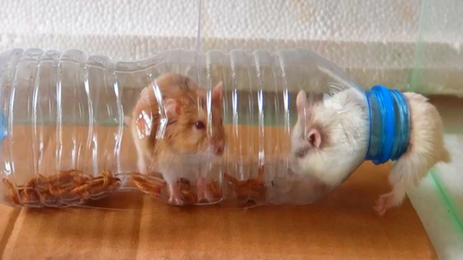 Красивые хомячки кушают червяков в бутылке Милые Животные Видео про Насекомых Хомяк ест червей проволочника