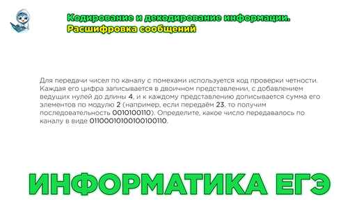 Информатика ЕГЭ. № 4. Кодирование и декодирование информации. Расшифровка сообщений. № 3684.mp4