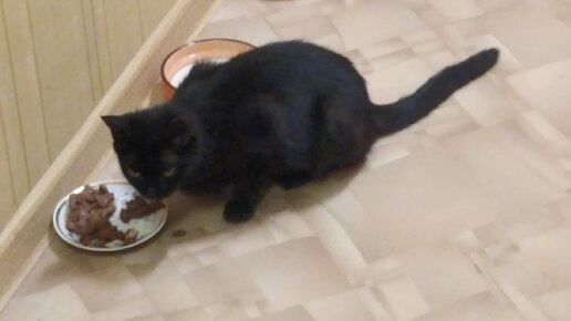 Кот Мишка поделился с Бусинкой вкусной едой.