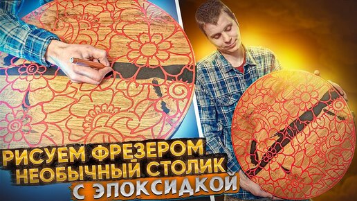 Столик из дубового слэба и эпоксидной смолы с интересным цветочным узором