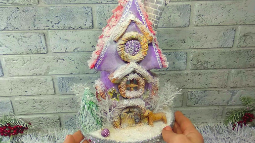 Рождественский домик из соленого теста и доступных материалов своими руками. DIY.