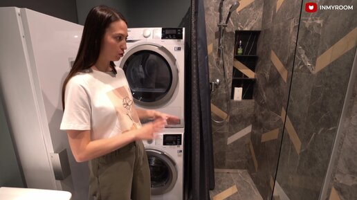 Гостевой санузел с душевой кабиной и сушильным шкафом! Классное решение для квартиры!